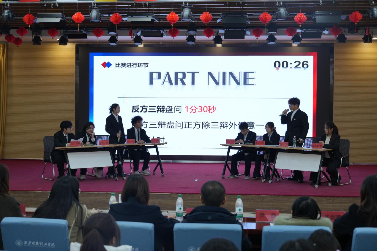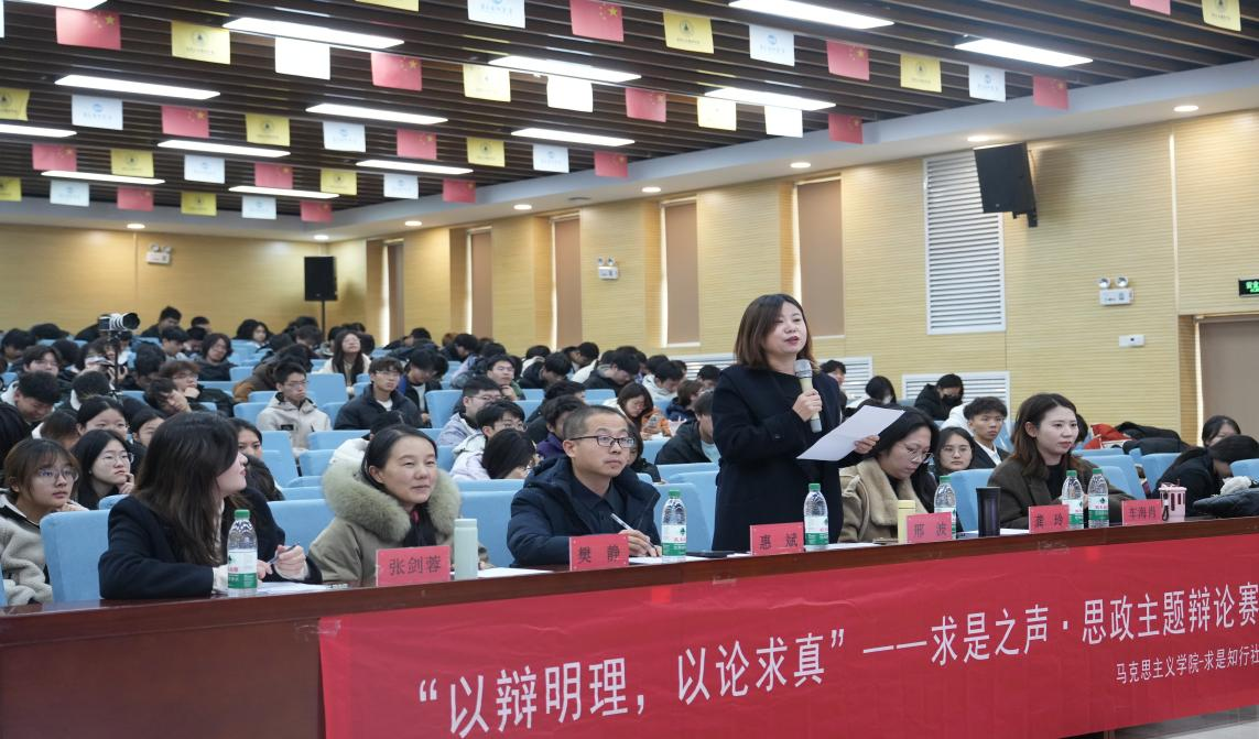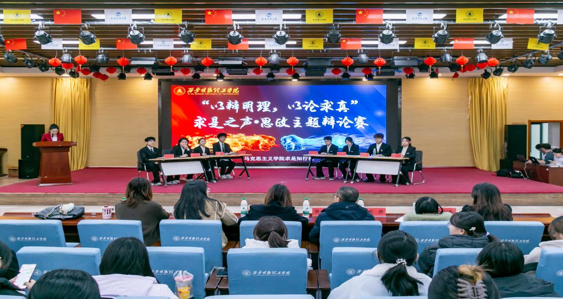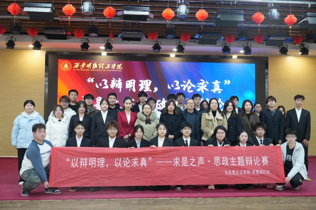 12月11日中午,西安明德理工学院首届“求是之声”思政主题辩论赛决赛在六号楼203隆重举行。本届辩论赛以“以辩明理,以论求真”为主题,由马克思主义学院求是知行社主办,旨在通过思辨交锋,深化青年学子对时代议题的思考,提升思想政治素养与逻辑表达能力。