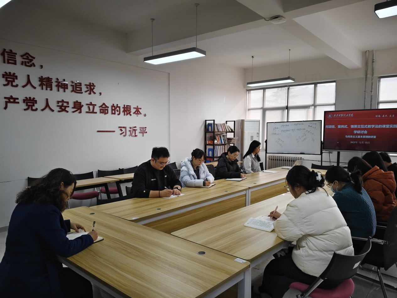 为进一步落实立德树人根本任务,深化思政课改革创新,提升课堂教学的吸引力与感染力,12月16日中午12:30,马克思主义基本原理教研室在行政楼南306会议室召开了 “问题链、案例式、情景交互式教学法的课堂实践教学”研讨会。教研室全体教师参加了本次活动,会议由教研室主任张启云主持。