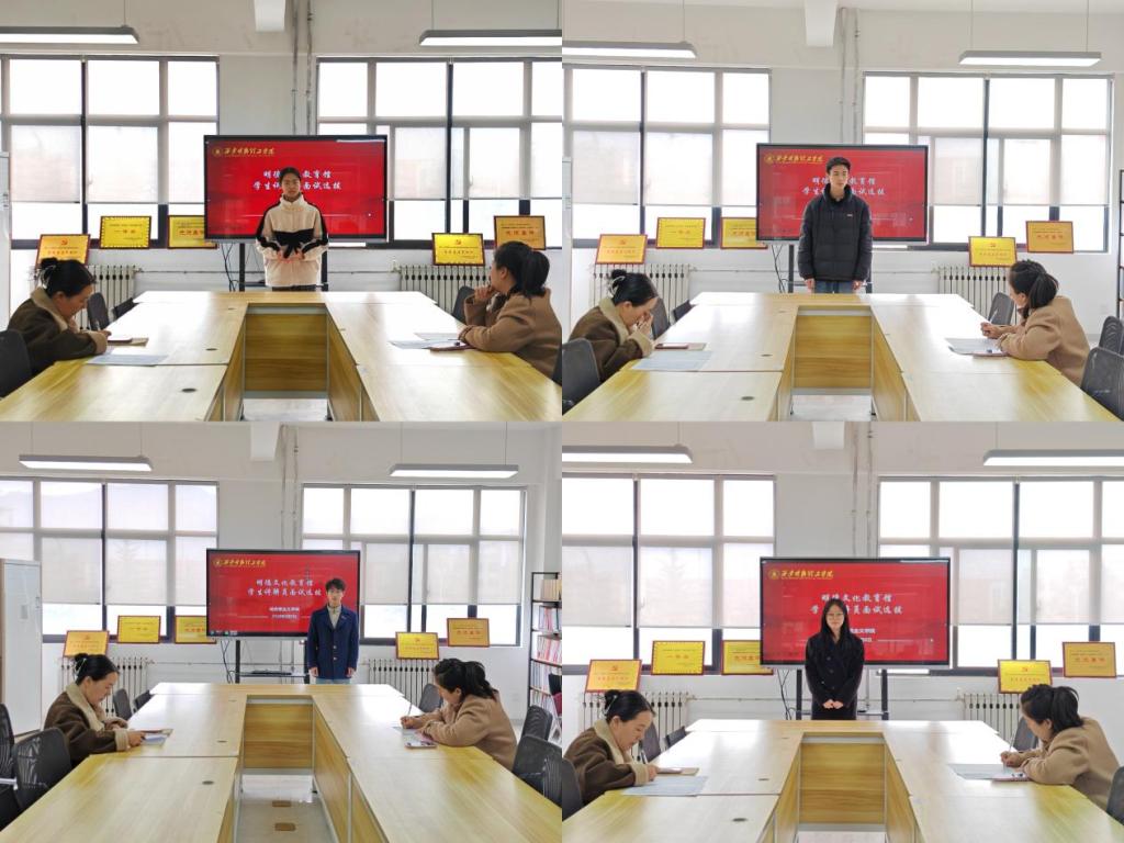 本次面试面向全校在校生公开招募,旨在选拔政治立场坚定、表达能力突出、热爱文化传播、具备责任担当的优秀学生,组建一支高素质、专业化、有活力的学生讲解员队伍。面试严格按照规范流程进行,重点考察参选学生的语言表达、仪态仪表、临场应变与思政素养。