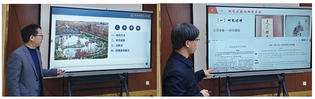 为提升评审效率与精准度,本次指导会采用“重点项目现场答辩,一般项目书面评审”的差异化评审模式。2025年度明德文化基金项目申报评审和2024年度明德文化基金项目结题评审相继开展。评审专家团对两位老师严谨务实的科研态度、富有创新价值的研究成果给予了高度肯定,认为项目研究紧密贴合明德文化育人需求,兼具理论深度与实践指导意义。同时,专家们结合自身学术研究经验,针对课题研究中的细节完善、成果转化、后续研究拓展等方面逐一提出了精准指导。