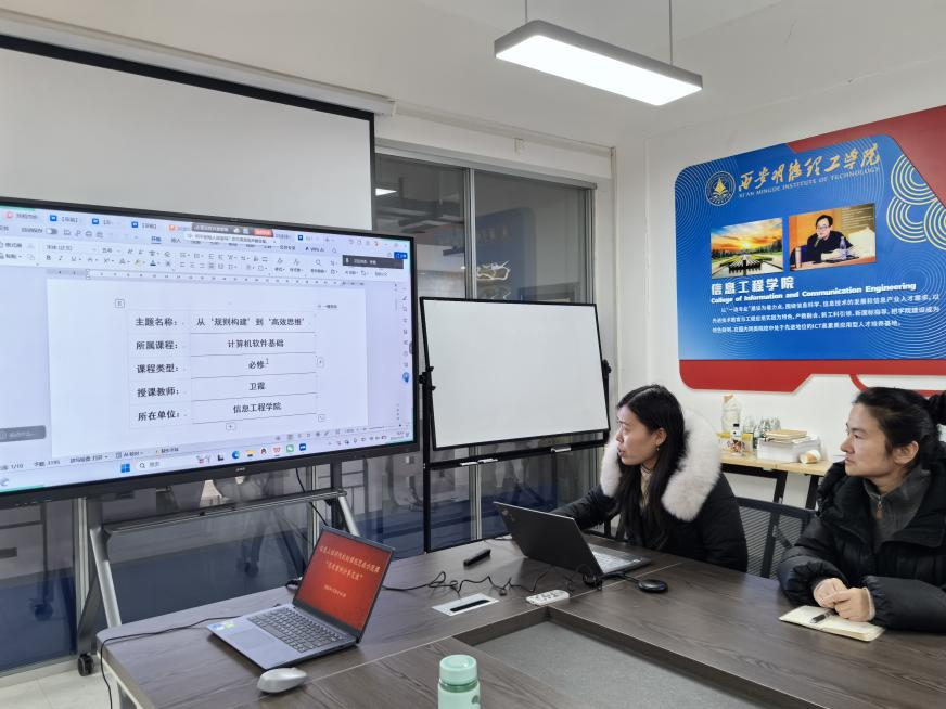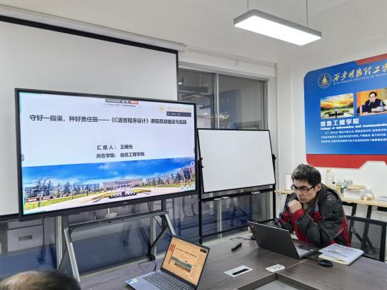 分享环节中,七位课程负责人结合课程特色与育人目标,带来了深入浅出、特色鲜明的案例分享,生动展现了信息类课程知识传授与价值引领的有机融合。《算法分析与设计》负责人马蕾老师,通过经典算法的演进比较,引导学生领悟“最优解”背后的系统思维与全局观念,厚植科学精神与工匠精神;《光纤通信》负责人吕瑛老师,串联我国光通信领域从追赶到领先的奋斗历程,将科技报国情怀与自主创新意识自然融入技术原理讲解;《数字信号处理》负责人周欣老师,以“信号去噪”“特征提取”为喻,引导学生在信息时代明辨是非、坚守本心,培育人文素养与社会责任感;《数据结构》负责人李茹老师,借数据结构的高效组织与应用,诠释“整体与部分”“秩序与效率”的辩证关系,传递协同合作的集体主义精神;《C语言程序设计》负责人王曙光老师,聚焦代码规范、逻辑严谨与工程伦理的内在关联,在培养计算思维的同时,筑牢学生诚信严谨的职业道德根基;《通信原理》教师孙维菊老师,从“编码-传输-解码”全流程切入,引申信息传递的准确性与责任感,凸显通信技术对社会连结与进步的推动作用;《计算机软件基础》负责人卫霞老师,围绕软件生态、知识产权保护等主题,引导学生认识自主可控软件体系建设的战略意义,树立科技自立自强的远大志向。分享结束后,与会教师围绕思政元素的无痕融入、教学案例的设计技巧、成效评价方法等关键问题展开热烈讨论,在思想碰撞中凝聚育人共识。