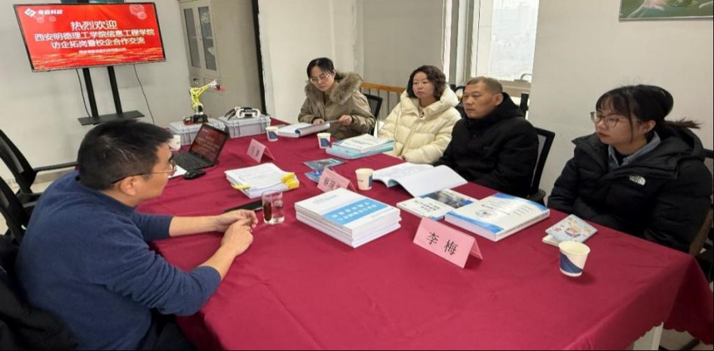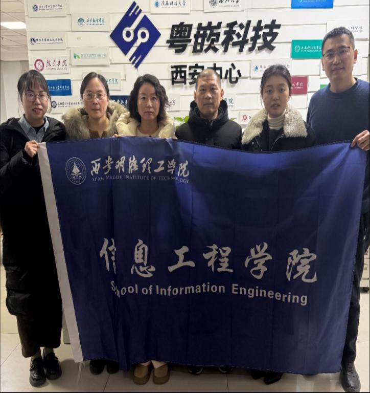 为深化产教融合、校企协同育人机制,精准对接行业人才需求,2026年1月19日,信息工程学院计算机科学与技术负责人蔡现龙老师、软件工程负责人马蕾老师、电子信息工程负责人李颖华老师及专业骨干教师李梅老师组成访企团,赴西安粤嵌信息科技有限公司开展专项交流活动。双方围绕人才培养模式创新、课程体系优化、实习实训基地建设、就业指导服务升级等核心议题展开深度研讨,达成多项合作共识,为推进校企资源共享、双向赋能奠定坚实基础。
