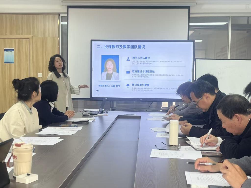 吕瑛老师则从课程基本情况、建设情况等方面展开汇报。《光纤通信》作为基金工程专业专业课,面向大三学生开设,共36学时、2个学分,紧扣学校高素质应用型人才培养定位,以“纤”动未来,光“耀”中华为建设主题,遵循“以学生为根,以育人为本”的理念。课程团队由吕瑛老师牵头,师资结构合理、成果丰硕,团队成员在教学比赛、课题研究、学生竞赛指导等方面表现突出。教学改革方面,课程构建了知识、能力、素养三位一体的目标体系,采用“理论+实践”双驱动模式,创新线上线下混合式教学方法,建成包含30个思政案例的案例库及丰富的线上资源,将思政元素全面融入教学全过程与考核体系。目前学生评教分数均在90分以上,同行评价良好,学生素养显著提升,课程形成了以技术发展、国家需求、职业责任为主线的鲜明特色,未来将重点推进思政案例库更新、校外思政基地建设、AI技术融入等工作。