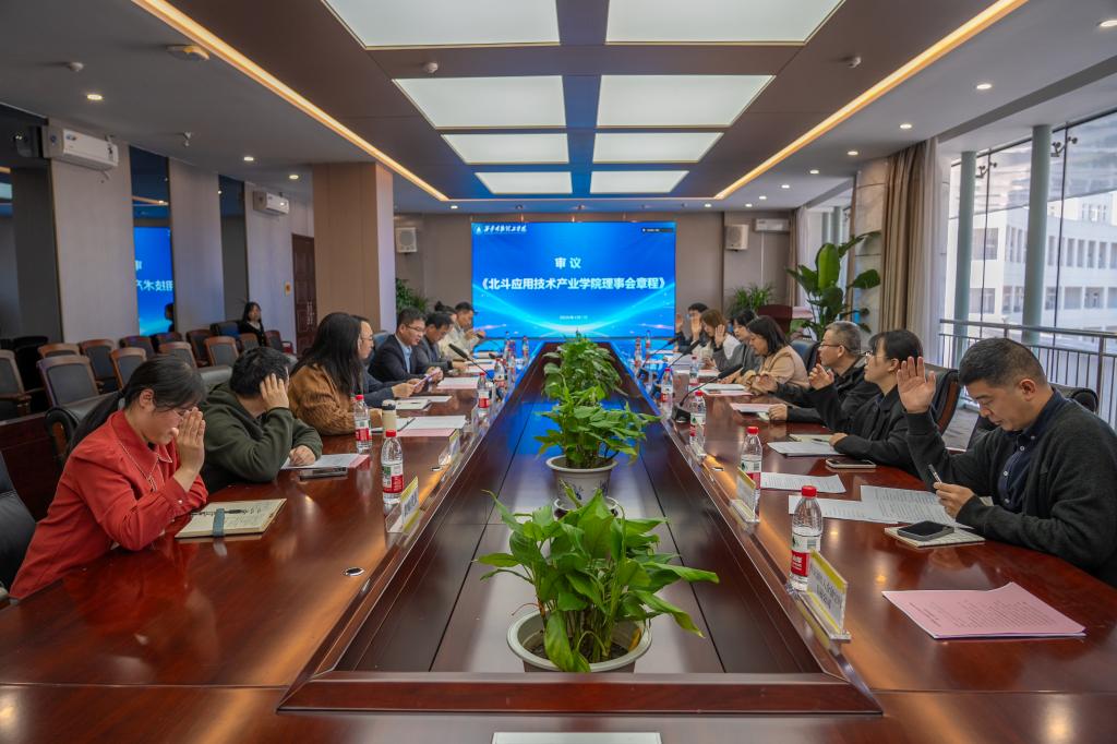 会议审议通过《北斗应用技术产业学院理事会章程》,明确常态化沟通、项目对接、实质化合作三大机制;表决产生第一届理事会成员名单,副校长刘星为副理事长单位及理事单位颁发聘书。同时,会议通过《学院建设规划(草案)》,确立“短期完善机制、长期打造省级标杆”的发展目标。