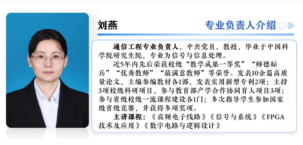 通信工程教学团队2015年获得陕西省省级教学团队称号,2021年获得省级虚拟教研室立项建设。现有专兼职教师30余名,其中教授、副教授11人,博导2人,陕西省普通高等学校教学名师1人,校级教学名师1人,教育部工业和信息化职业教育教学指导委员会通信类专业教学指通信工程教学团队2015年获得陕西省省级教学团队称号,2021年获得省级虚拟教研室立项建设。现有专兼职教师30余名,其中教授、副教授11人,博导1人,陕西省普通高等学校教学名师1人,校级教学名师1人,教育部工业和信息化职业教育教学指导委员会通信类专业教学指导委员会委员1人。