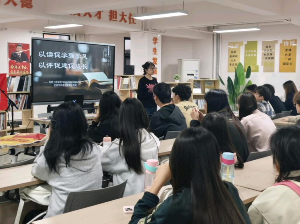 为扎实推进学风建设走深走实,营造勤学善思、书香浓郁的校园氛围,4月7日下午,信息工程学院辅导员李娜组织所带学生分三个会场同步开展“以读促学强学风 以评促建促成长”优良学风建设读书分享会,200余名学生参与活动。活动中,101012504班与101012505班、101012506班与101012507班在“一站式”学生社区梅苑学生发展赋能中心开展分享,101022501班与101022502班在“一站式”学生社区菊苑就业指导中心进行交流,各会场同步推进...