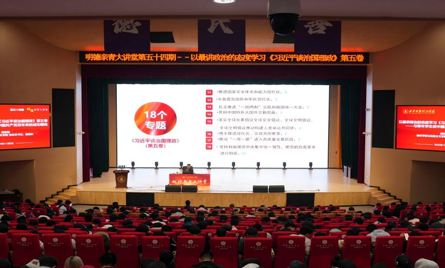2025年11月6日晚,我校第五十四期“明德亲青大讲堂”在四季廊桥报告厅隆重举行。本次讲座邀请到西北大学博士、陕西优秀思政课教师、第二届陕西省党史专家库成员、共青团陕西省委讲师团成员、榆林市委理论宣讲人才...