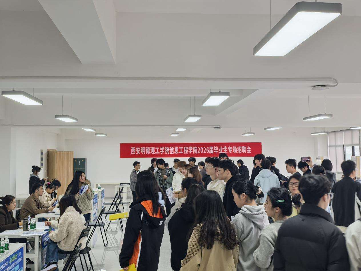 为进一步拓宽毕业生就业渠道,加强“求职双选”招聘力度,精准对接优质就业资源。11月6日,信息工程学院成功举办2026届毕业生专场招聘会,学院2026届毕业生及辅导员现场组织参会。本次招聘会共有西安粤嵌信息科技...