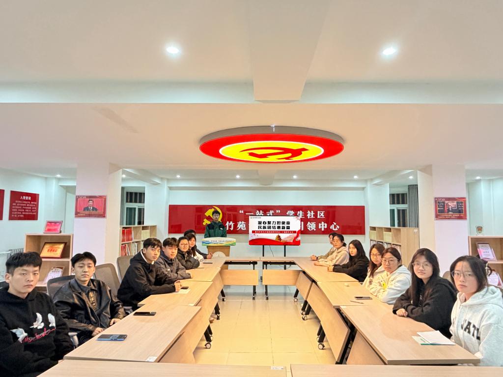 2025年11月3日,党委学生工作部在竹苑“一站式”学生社区,组织开展以“凝心聚力担使命 民族团结谱新篇”为主题的二十届四中全会精神学习分享交流会。学校少数民族学生兼职辅导员王悦琳,第十八期青马班学员代表及少数民族同学代表共同参与。