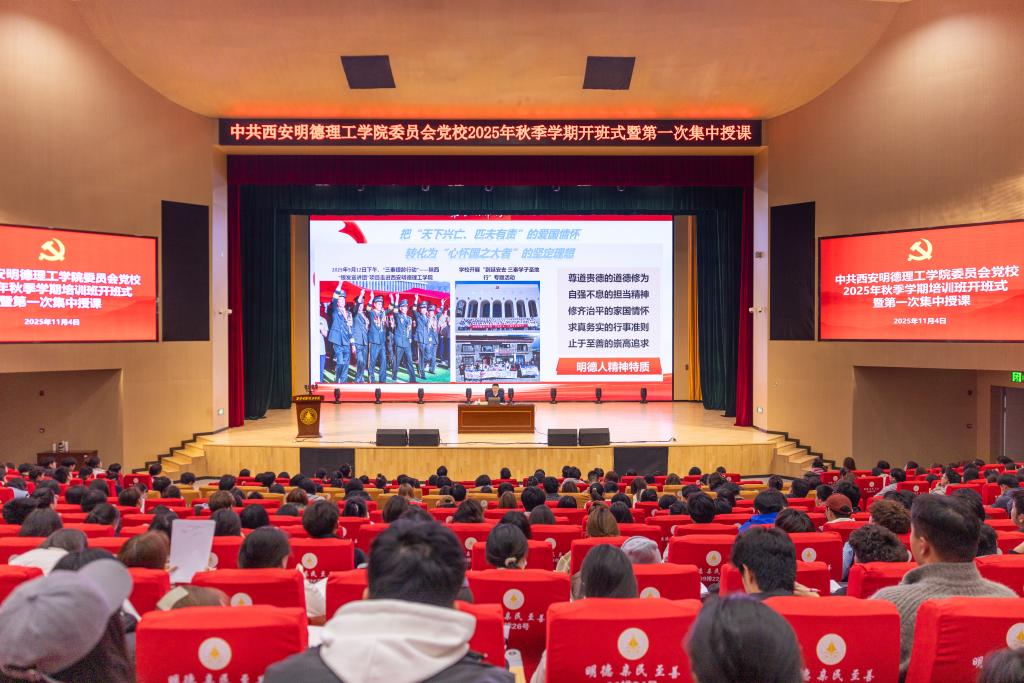 为深入贯彻落实新时代党的建设总要求,充分发挥党校教育培训主渠道、思想理论建设主阵地作用,切实加强对入党积极分子、发展对象、预备党员的思想政治引领,确保学校发展党员质量,11月4日晚,学校2025年秋季学期党校培训班开班式暨第一次集中授课在四季廊桥报告厅隆重举行。校党委书记马川鑫出席开班式并讲授专题党课。校党委副书记、副校长刘星,各基层党委(党总支)书记参加活动。第50期、51期预备党员培训班,第27期、28期发展对象培训班及各二级党校入党积极分子培训班共1000余名学员参加。开班式由党委组织宣传部副部长张亚平主持。