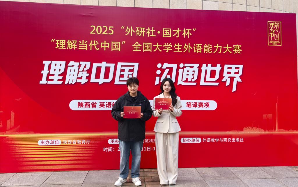 金秋时节,赛事传捷。2025年11月1日至2日,由陕西省教育厅主办、西安建筑科技大学精心承办的2025“外研社・国才杯”“理解当代中国” 全国大学生外语能力大赛陕西省赛,在热烈的竞技氛围中圆满落下帷幕。经过两天的激烈角逐,我校参赛选手不负众望,凭借扎实的语言功底与出色的综合素养,一举斩获12项省级奖项——其中银奖1项、铜奖11项,用亮眼成绩为学校赢得荣誉,也展现了明德学子在外语领域的强劲实力。