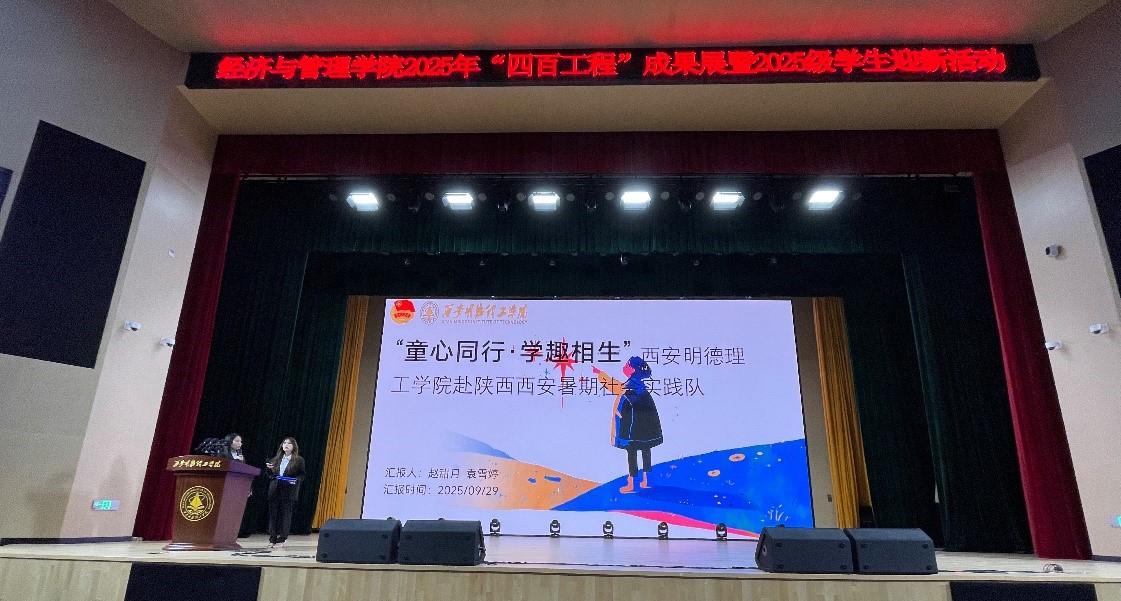 活动在全体师生合唱《明德之歌》中拉开帷幕,熟悉的旋律回荡在校园,既传递了明德精神,也为整场活动奠定了温情的基调。随后,“四百工程”成果展以专题视频形式播放,2025年学院“四百工程”参与师生280余人,足迹遍布甘肃、江苏、福建、陕西、四川、云南等20余个省份和城市,经管学子将社会实践同社会观察、调查研究、志愿服务、专业学习、乡村振兴、创新创业有机结合,通过“实践+”育人理念,在实践中传承红色基因、弘扬传统文化、推进乡村振兴和生态环境保护。