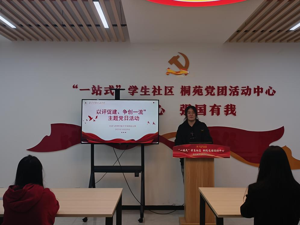为凝聚本科教学工作合格评估共识,发挥学生党员先锋模范作用,助力学校高质量发展,10月29日,经济与管理学院学生第四党支部在“一站式”学生社区桐苑党团活动中心开展“以评促建、争创一流”主题党日活动。支部党员、发展对象和入党积极分子参加了活动,活动由支部党员张煜欣主持。