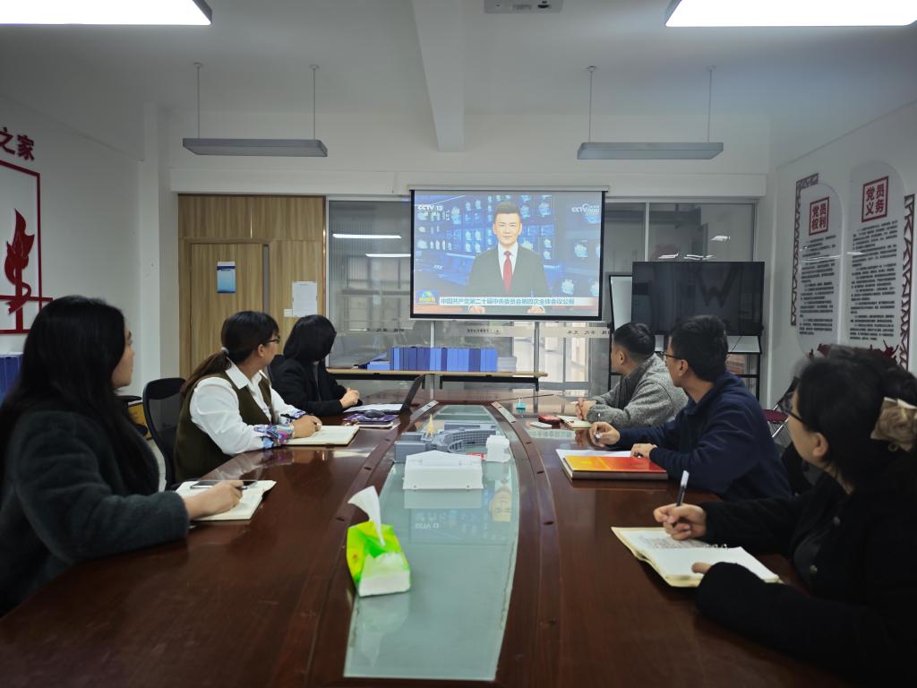 上,全体成员集中观看了中国共产党第二十届中央委员会第四次全体会议公报,重点学习全会审议通过的《中共中央关于制定国民经济和社会发展第十五个五年规划的建议》核心内容,深刻领会全会提出的“高质量发展取得显著成效”“科技自立自强水平大幅提高”等七大发展目标,以及“建设现代化产业体系”“一体推进教育科技人才发展”等战略任务。