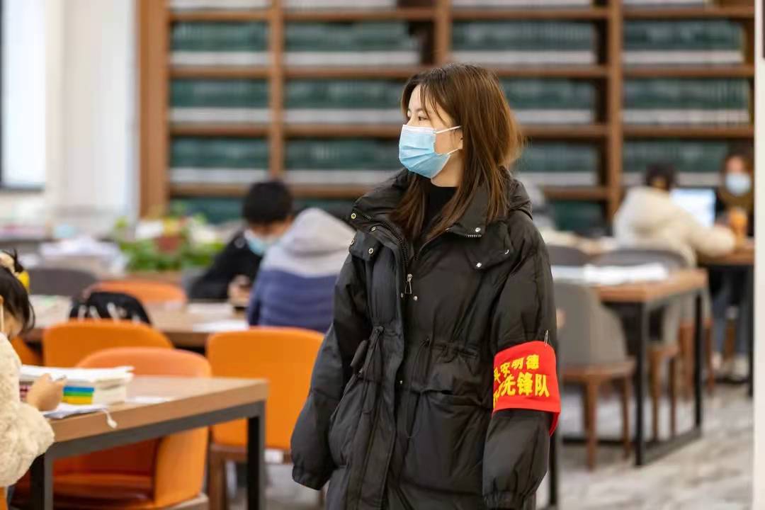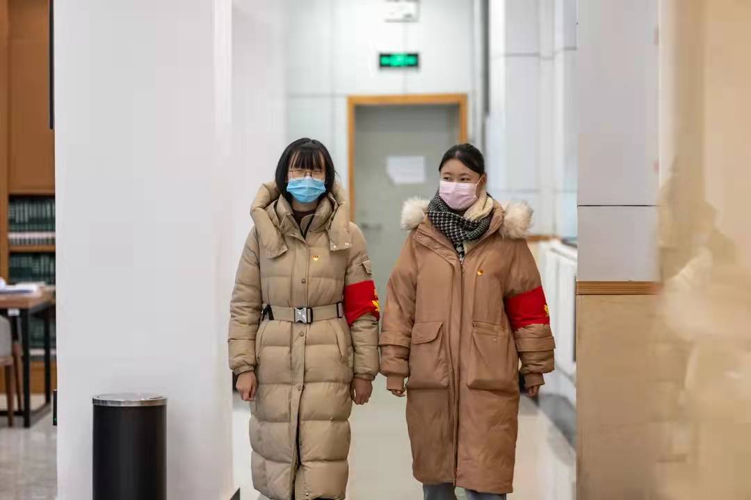 初雪的冬日,疫情的蔓延,注定了一个不平凡的期末。可爱的大白,闪亮的党徽,为心中送去丝丝温暖。作为一名共产党员,积极响应学校党委号召,报名党员先锋岗,在图书馆执勤时,巧遇考研学生集体去进行核酸检测,看着同学们秩序井然地进出馆门,有的还拿着复习资料,心中默默为他们打气加油。相信在学校正确领导下,在师生们的共同努力下,考研学子定能上岸,疫情也必将早日散去。期待春暖花开,拥抱亲爱的明德!