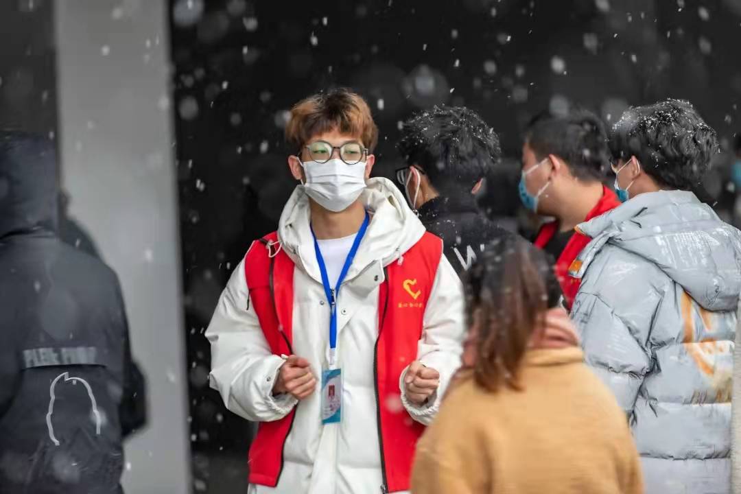 学生党员孙一辰:今天的西安下雪了,而我们也迎来了第四次核酸,虽然很冷,但是在我们志愿者的维持下和同学们的自觉下,核酸有序地进行着,最暖心的事是,同学们的不抱怨不埋怨,甚至还会收获一句谢谢你,这让我觉得,我此刻的行动是有价值的,是有意义的。疫情当前,我们共患难,长安永安,西安加油!