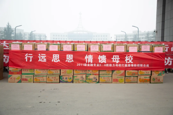 自学校疫情防控工作开展以来,广大校友和社会爱心人士慷慨解囊,捐资捐物,爱心不断汇聚,为全校师生打赢抗疫战坚定了信心。2022年1月6日,我校2011级金融学专业3-6班校友们自发组织募捐活动,给学弟学妹们捐赠了8000斤鲜美可口的苹果,让我们感受到了校友们暖暖的温情。