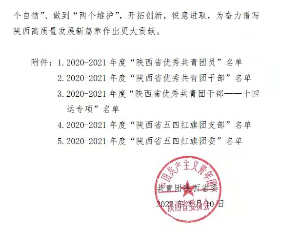 近年来,我校各级团学组织在校党委的正确领导下,紧密围绕上级团组织学校战线工作重点和学校中心工作,全面履行团组织的基本职能,各方面工作扎实推进,全面落实共青团深化改革,促进学校共青团、学生会工作发展迈上快车道。此次学校共青团干部和学生获得团省委表彰,是对全校团干部和团员青年的巨大激励和鼓舞,也是对我校团学工作的肯定和鞭策,更是落实高校人才培养立德树人的根本任务,弘扬社会主义核心价值观的体现。我校一直以来全面贯彻落实党的教育方针,将培养德智体美劳全面发展的社会主义建设者和接班人作为开展各项事务的工作基础,并通过先进典型的引领作用营造“争先创优”的良好氛围,致力培养出一批又一批的先进青年。学校团员、团干部和各级团组织也始终坚持以习近平新时代中国特色社会主义思想为指导,不断增强“四个意识”、坚定“四个自信”、做到“两个维护”,锐意进取,开拓创新,争当新时代弄潮儿,为奋力谱写陕西教育高质量发展新篇章贡献青春力量。