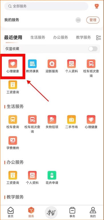 1.登录“西安明德理工学院融合服务门户”,点击下方“服务”。