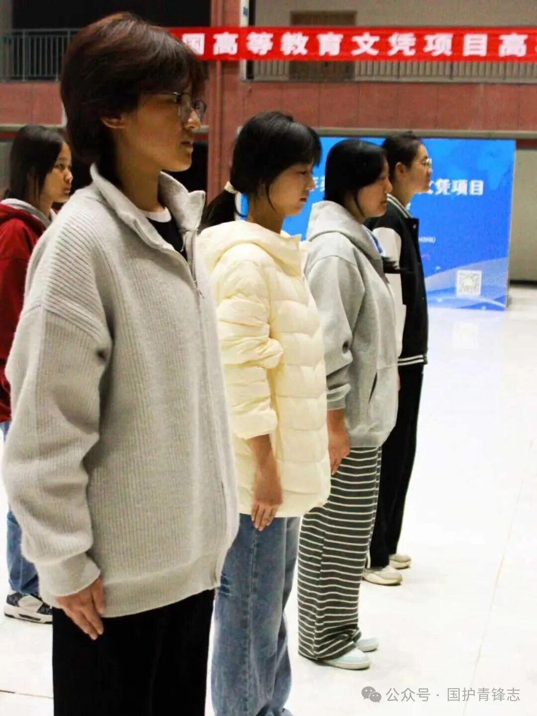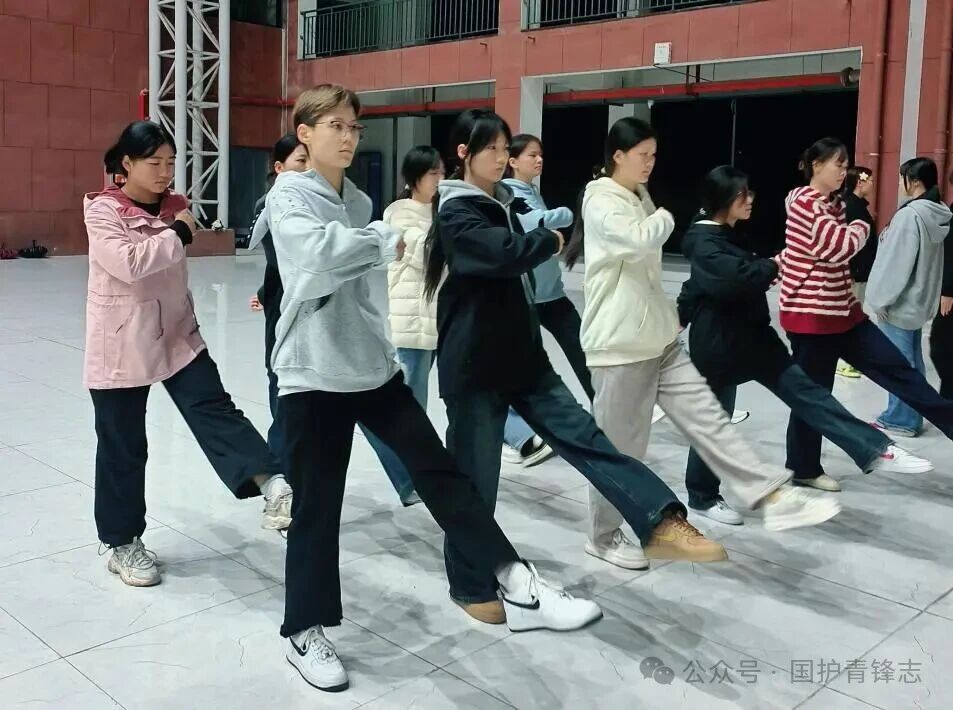 当最后一节晚自习的铃声消散,白日的喧嚣渐次退场,当教学楼的灯光逐间熄灭,中心广场的一隅亮起微光,迎来最“热闹”的时刻。一道道身影与月光下移动,脚步声、口令声在夜色中的铿锵回响,织成独属于国护的旋律—— 一场与疲惫对抗、与细节较真的修行。