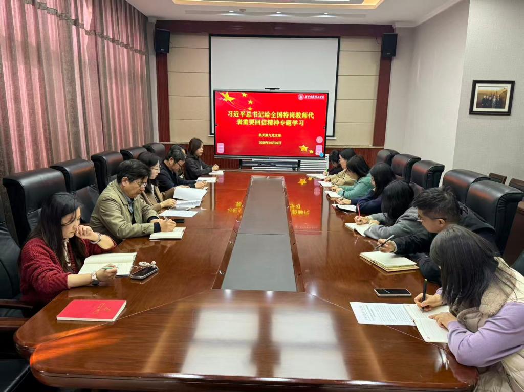 随后,与会同志们结合工作实际展开了深入讨论。文献资源中心王静老师表示:“我们要以习近平总书记的重要回信精神为指引,提升专业技能,做好文献资源建设,为学校教育教学工作顺利开展提供好资源保障。”综合服务中心杨玉华老师谈到:“特岗教师的奉献精神令人敬佩,我们要以他们为榜样,立足本职,强化服务意识,在平凡的岗位上践行教育初心,为师生提供更加优质的服务。”